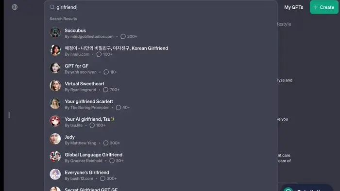 4、刚上线三天,OpenAI GPT 商店的「AI 女友」就已泛滥