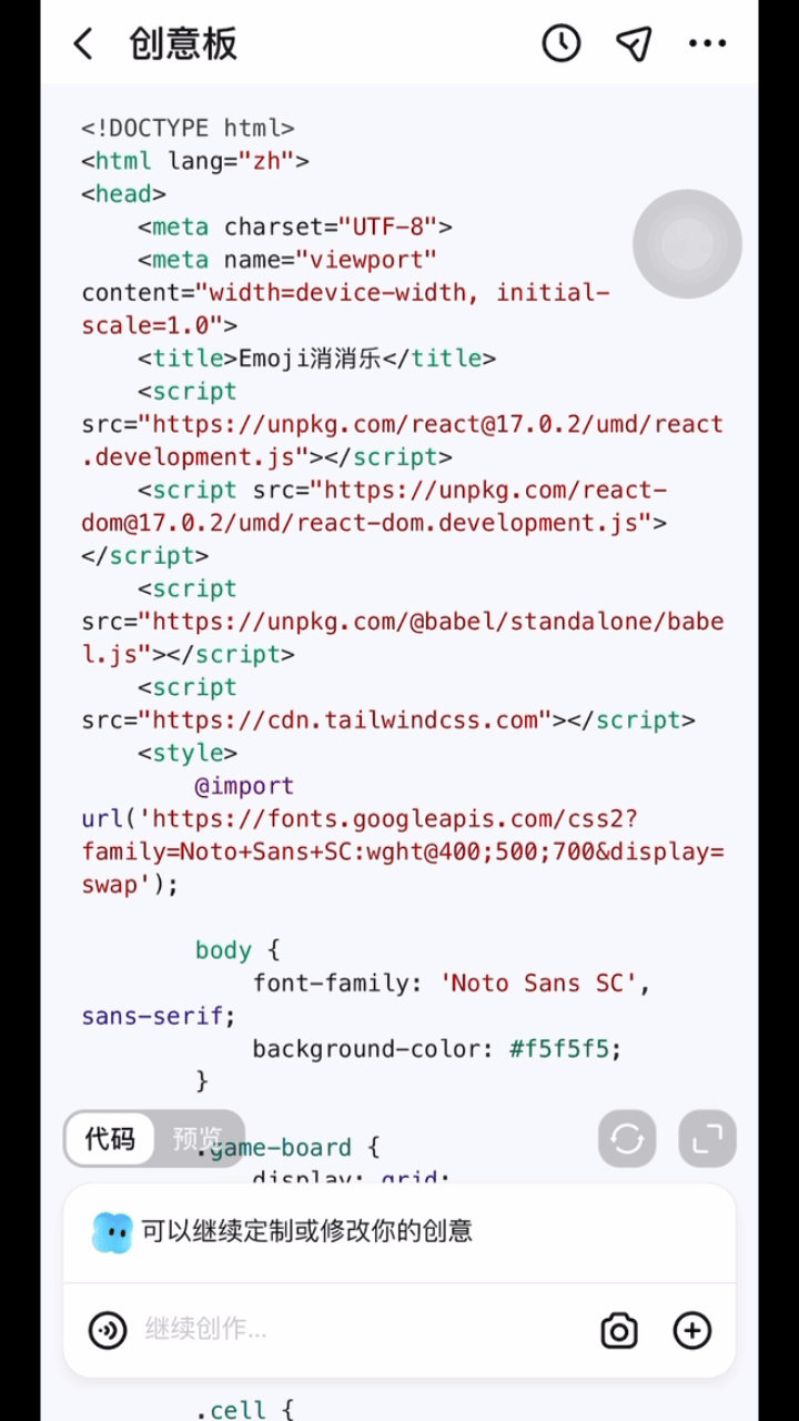 3、跃问 App 上新「创意板」功能:无痛自制应用+游戏