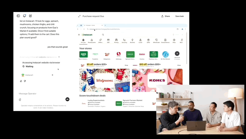 此外,Operator 会截取其内置浏览器的屏幕截图,以帮助它了解如何以及何时在应用中采取行动,例如何时使用按钮以及填写哪些表格。需要明确的是,当 Operator 遇到「卡住」的情况(例如当工具需要密码时)时,它不会截取屏幕截图。OpenAI 将此称为「接管」模式。