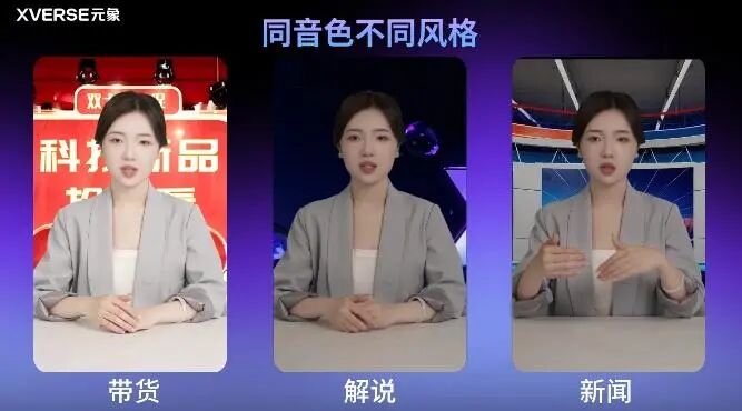 2、元象推出智能数字人平台「元象日播」:适配同音色多场景风格