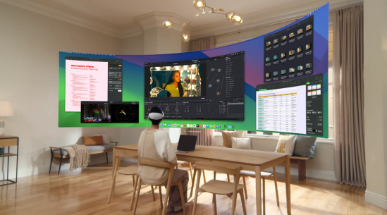 苹果表示,超宽的 Mac 虚拟显示屏具有 8K 的水平分辨率,相当于将两个 4K 显示器并排放置,这得益于眼动追踪技术的支持。