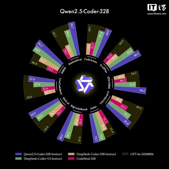 4、阿里通义千问开源 Qwen2.5-Coder 全系列模型,号称代码能力追平 GPT-4o