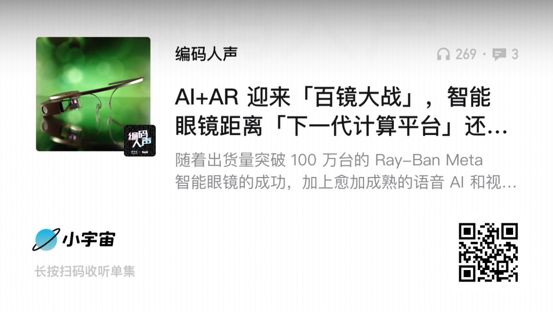 3、AI+AR 迎来「百镜大战」,智能眼镜距离「下一代计算平台」还有多远?丨播客《编码人声》