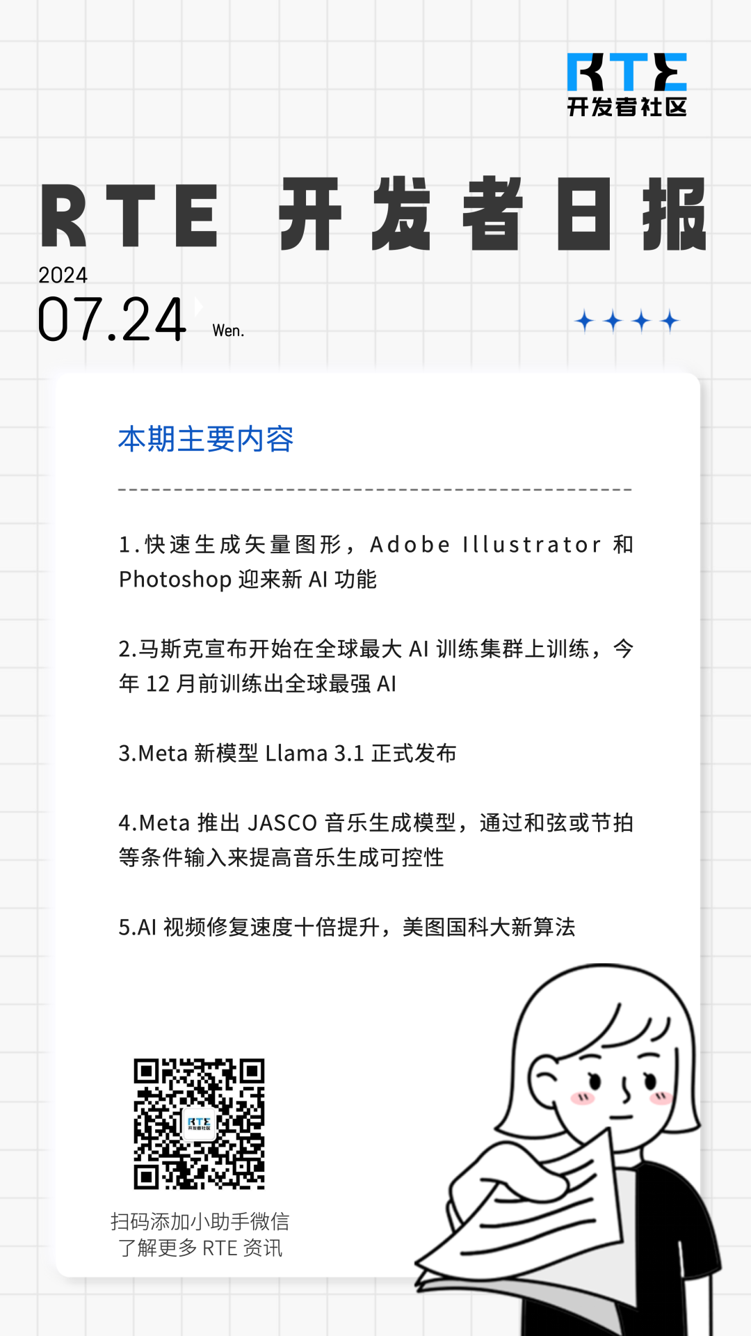 Adobe Illustrator 和 Photoshop 迎来新 AI 功能;马斯克将训练全球最强 AI丨 RTE 开发者日报