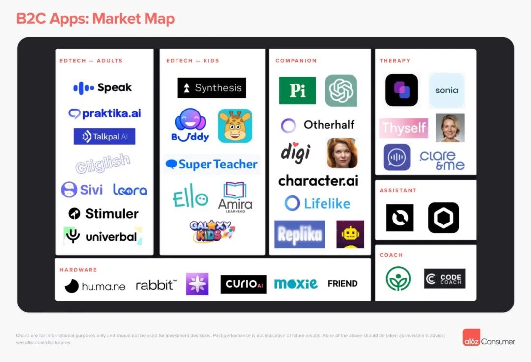 - 目前的产品已经能够满足语音AI的基本用例——如辅导、陪伴等。B2C 语音初创公司才刚刚开始解决特定的用例或创造 ChatGPT、Pi 等无法处理的体验。
