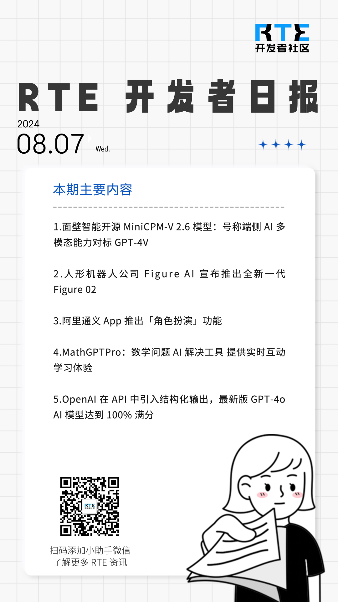 面壁发布端侧视觉理解模型 MiniCPM-V 2.6;ChatGPT 人形机器人二代正式发布丨 RTE 开发者日报RTE开发者社区 发布于 微信公众号