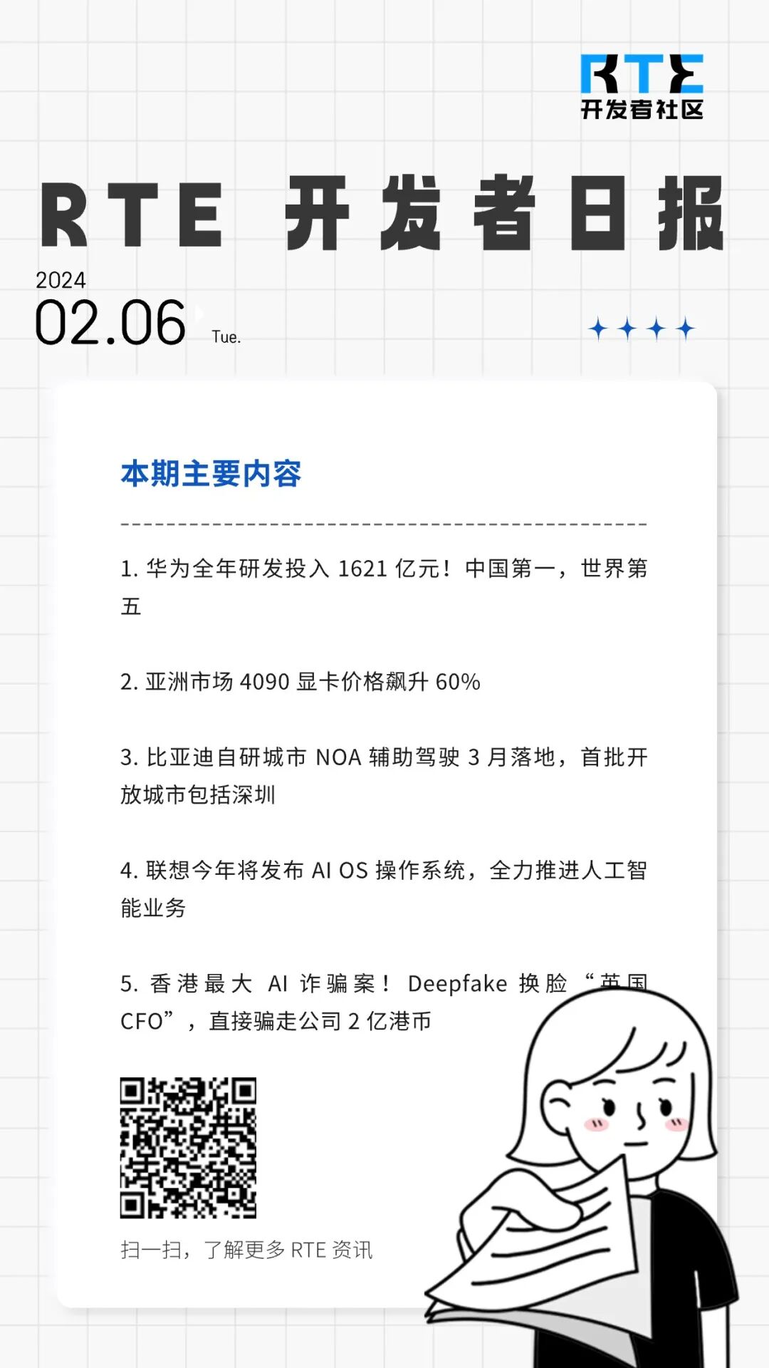 亚洲市场 4090 显卡价格飙升 60%;比亚迪自研城市 NOA 辅助驾驶 3 月落地丨 RTE 开发者日报 Vol.144RTE开发者社区 发布于 微信公众号