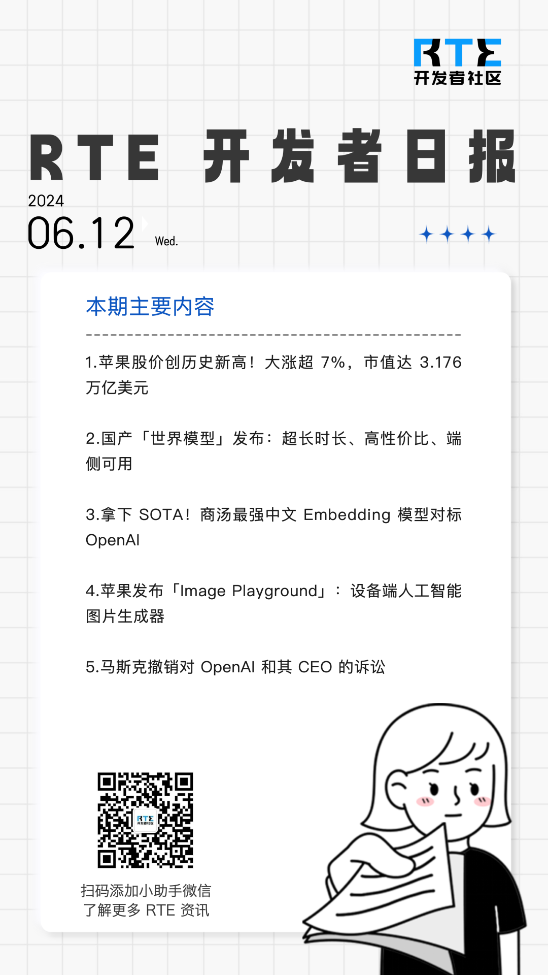 发布会后苹果股价创历史新高;商汤 Embedding 模型拿下 SOTA丨 RTE 开发者日报 Vol.223 更多信息