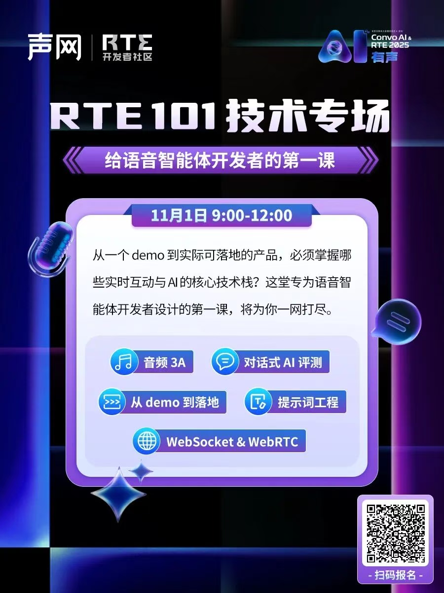 来 Convo AI & RTE2025 「RTE 101 专场」,加入我们的讨论,一同提问,一同寻找答案!