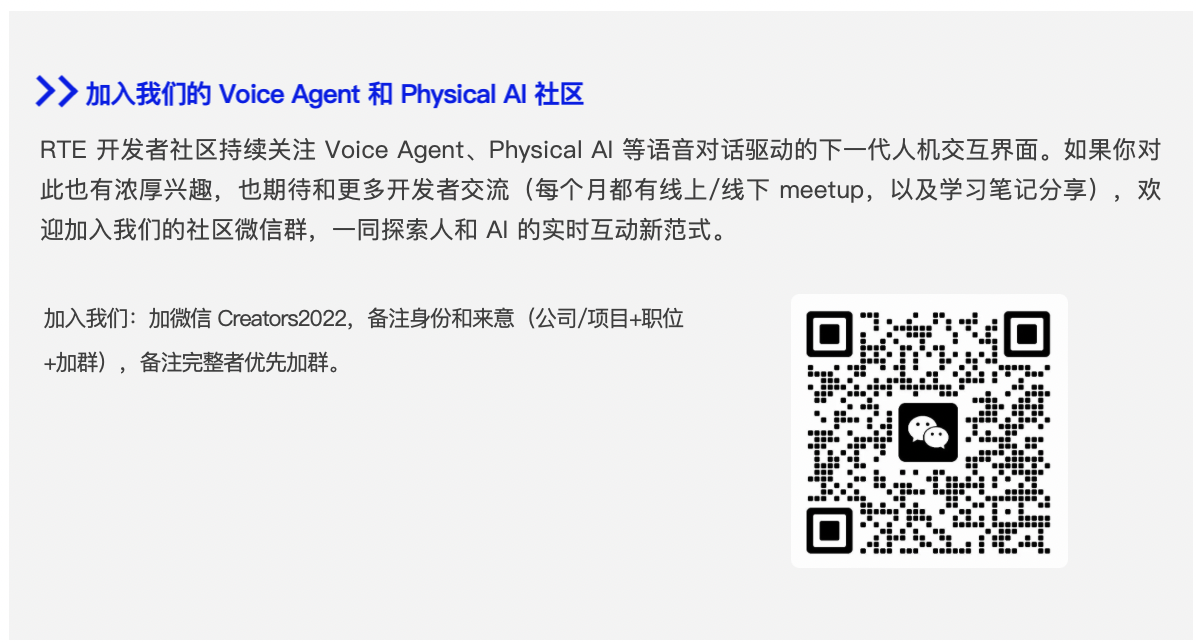 18:00-18:30 主题分享:Physical AI+Voice Agent 技术和产品趋势分享;分享人:Trent,Physical AI 与 Voice Agent 领域的资深专家、现任行业头部 AI 硬件公司产品经理 。
