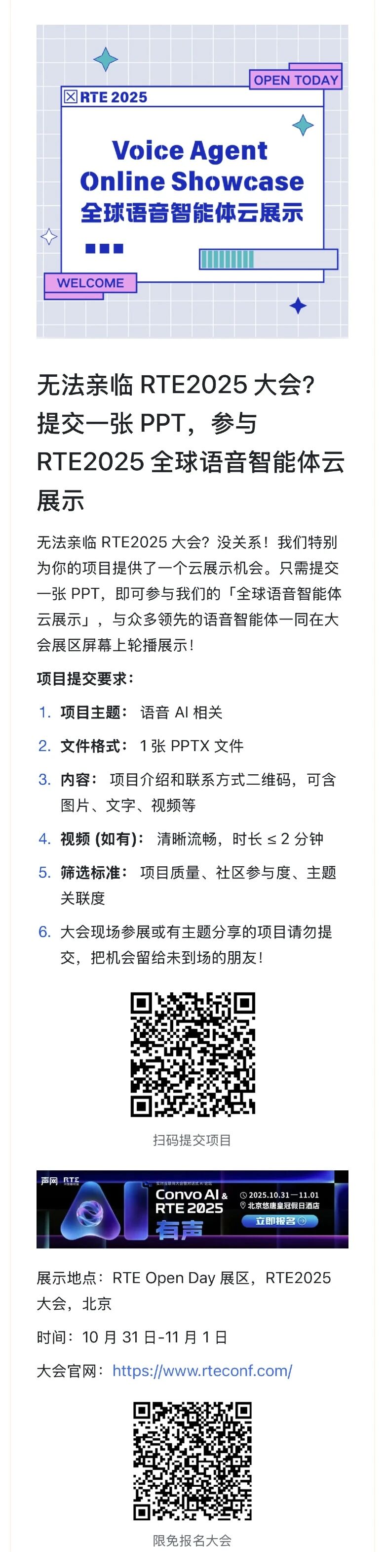 提交一张 PPT,参与 RTE2025 全球语音智能体云展示