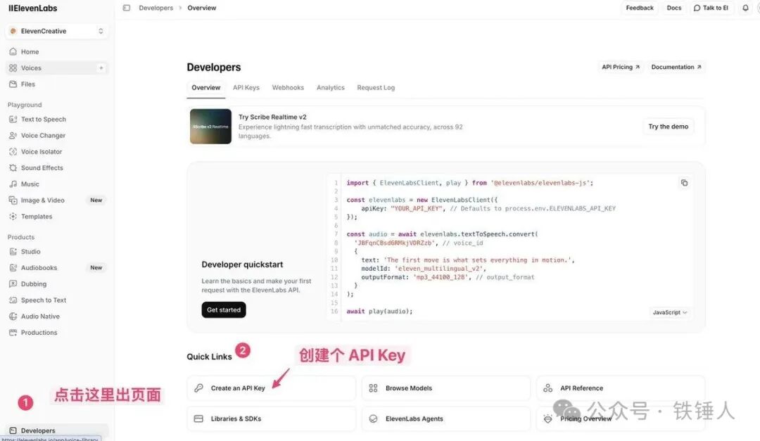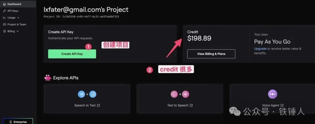 1. 进入控制台,点击左侧 API Keys